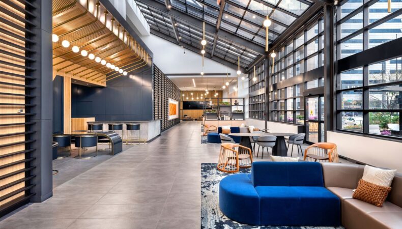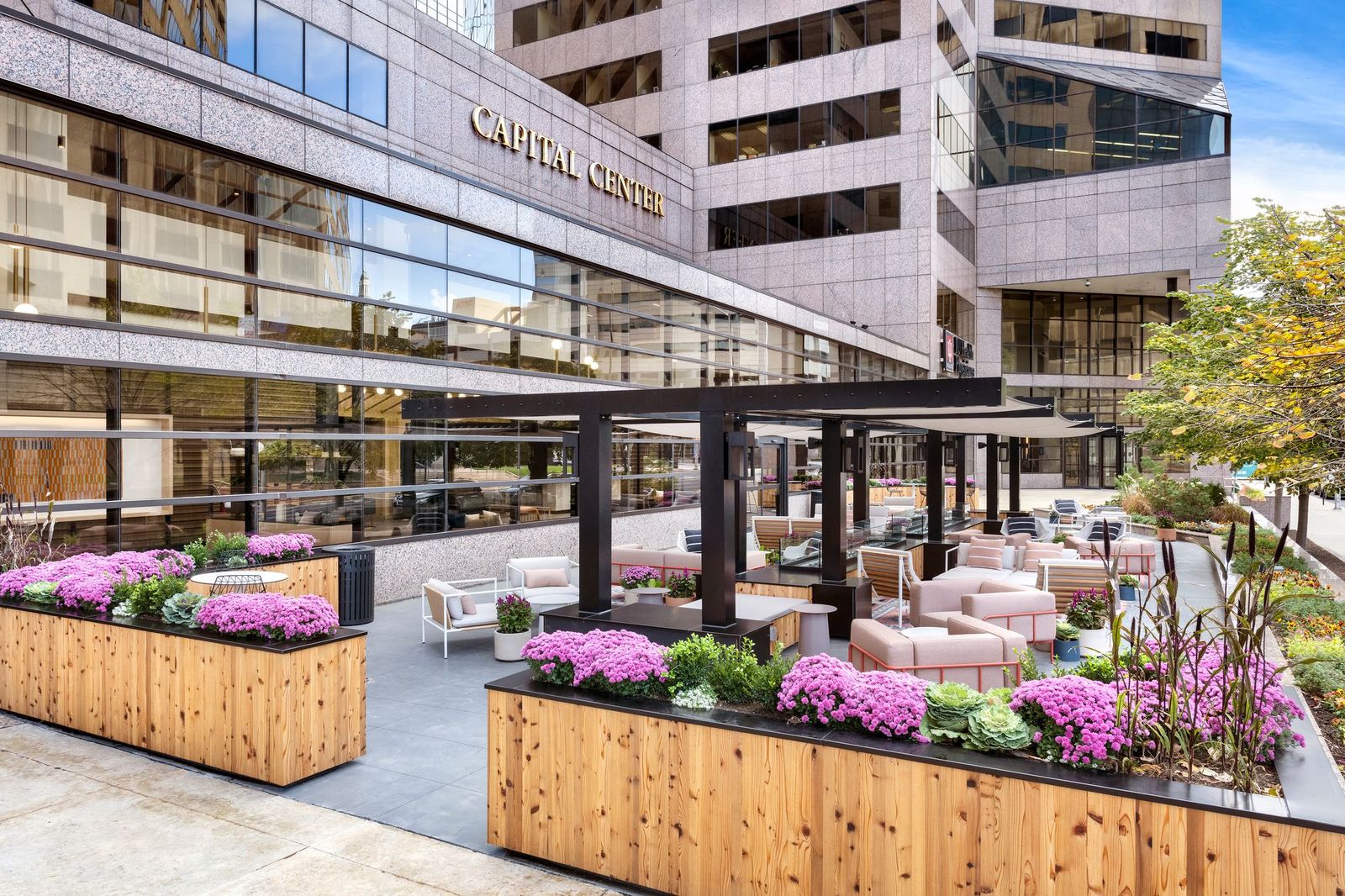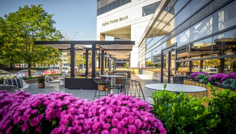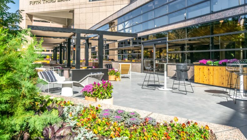 Zeller undertook a comprehensive renovation effort beginning in 2020, with work spanning across architectural upgrades, infrastructure modernization, and amenity enhancements. The cornerstone of the project was the reinvention of the atrium and outdoor plaza as vibrant, hospitality-driven spaces designed to elevate the tenant experience.