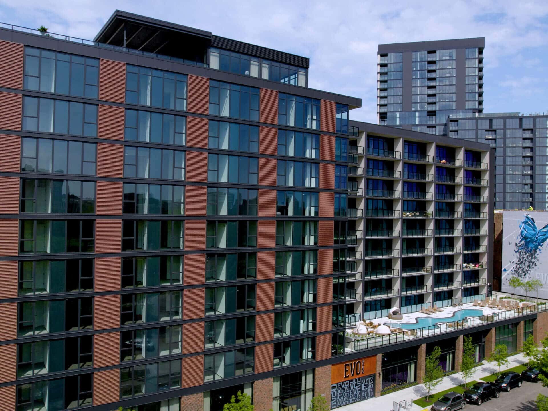 Evo Union Park is a 242-unit, 11-story multifamily development located in Chicago’s vibrant Fulton Market neighborhood. The property offers a mix of studio, convertible, one-, and two-bedroom units. Amenities include a fitness center with a private studio, resident co-working spaces, roof-level interior and exterior lounges, landscaped second-floor pool deck, a pet spa, a package room and bike storage.