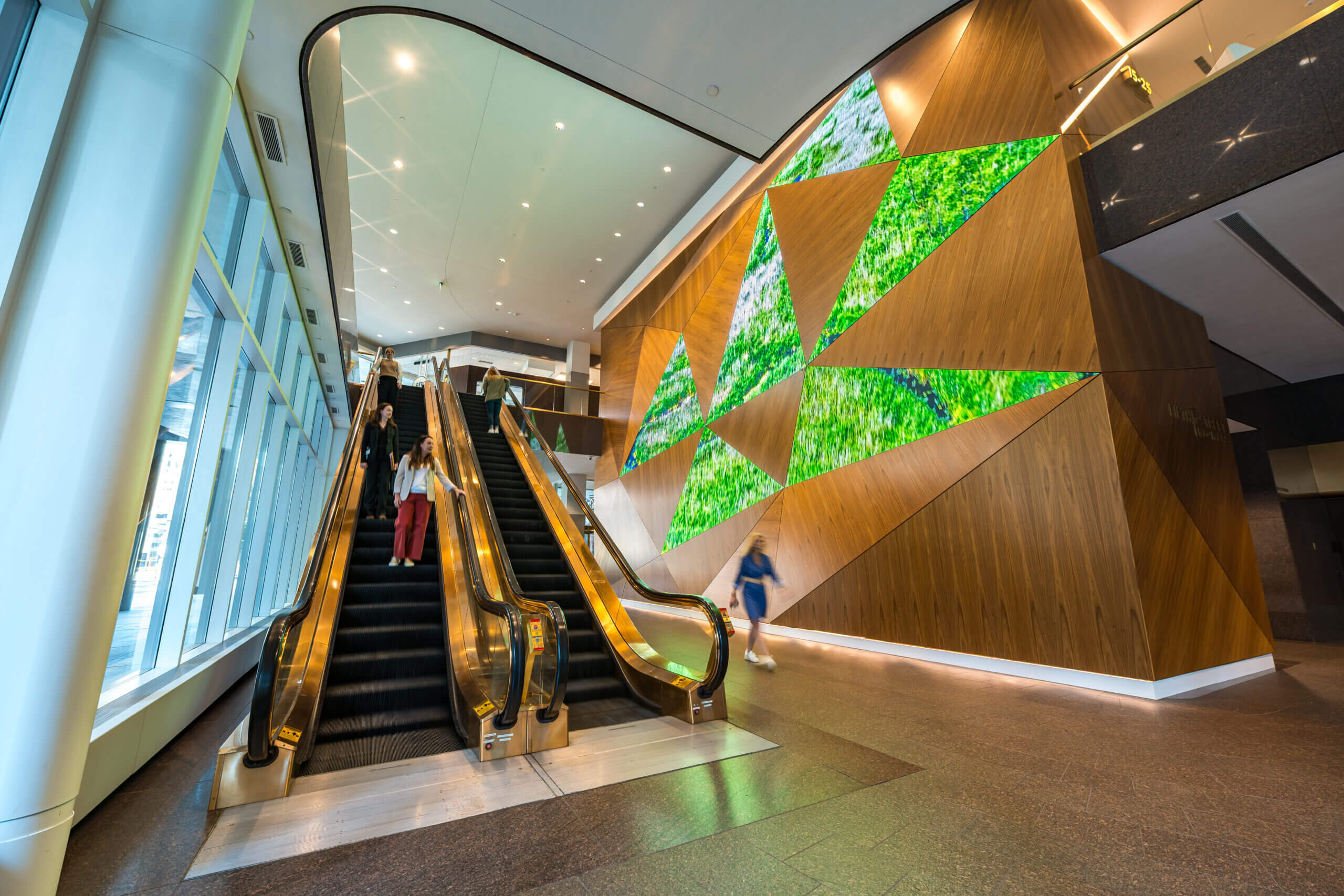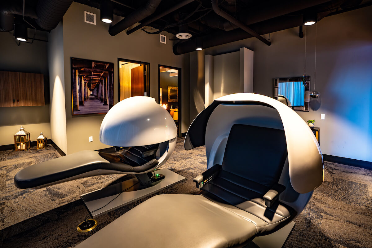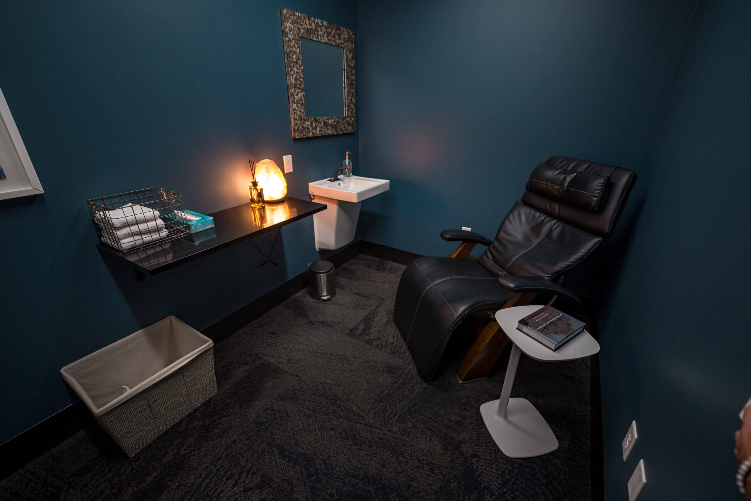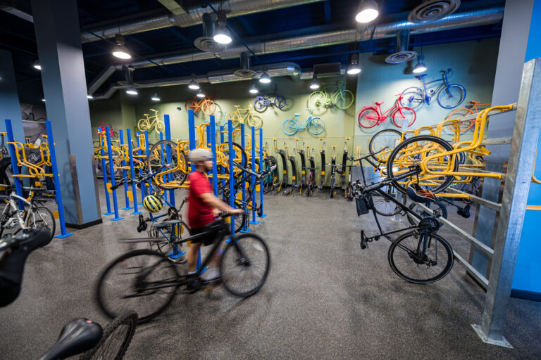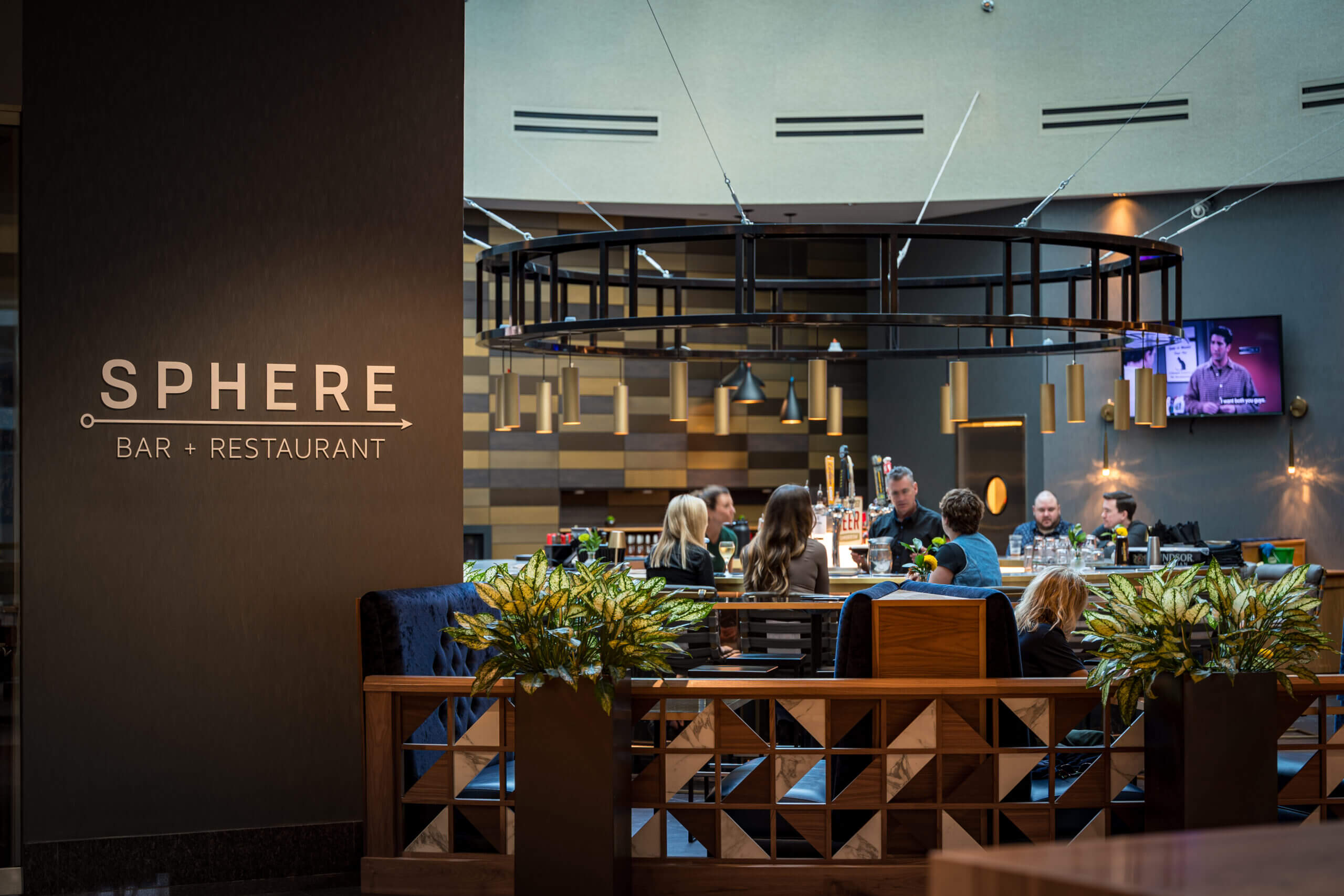 Connect lounge is a welcoming spot for employees looking for a change of scenery, featuring bar and lounge seating, private nooks, and cozy fireplaces.