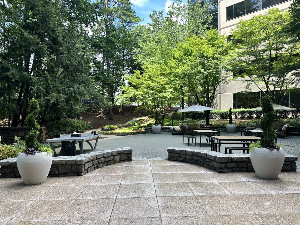 Connecting the two buildings is a lush, landscaped courtyard featuring audio, grills, a gas fire pit, charging stations, portable water cooler and an abundance of seating to bring fresh air to your workday.